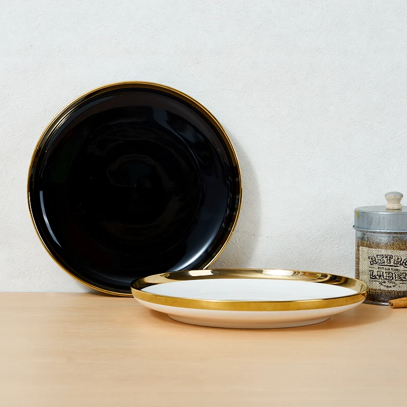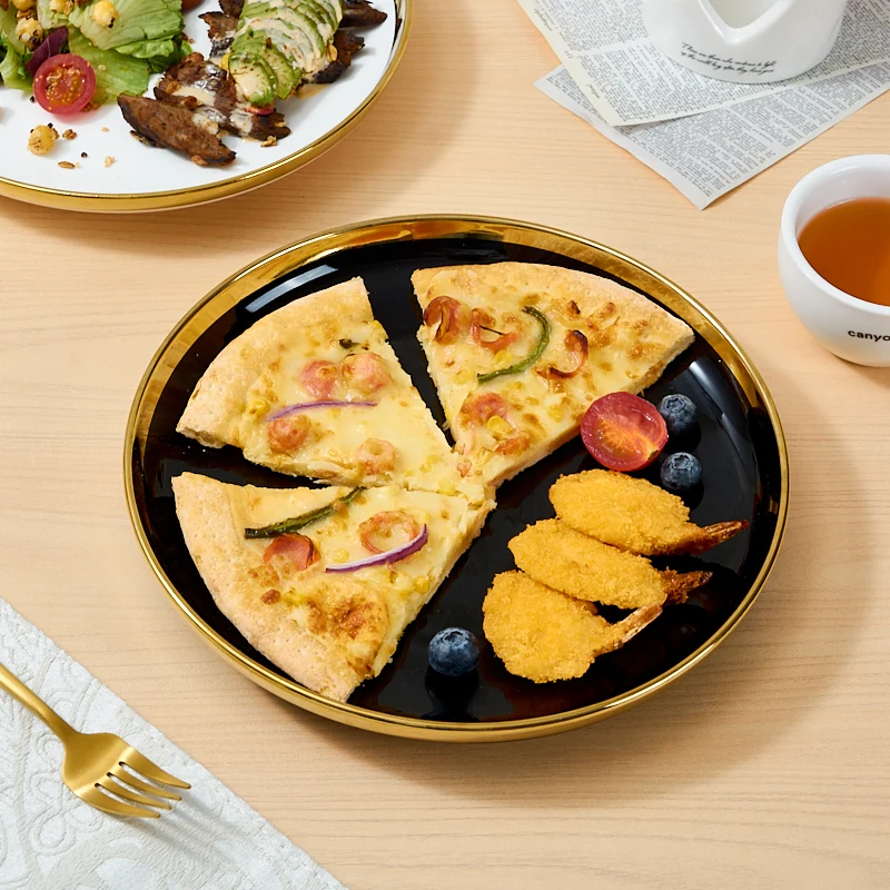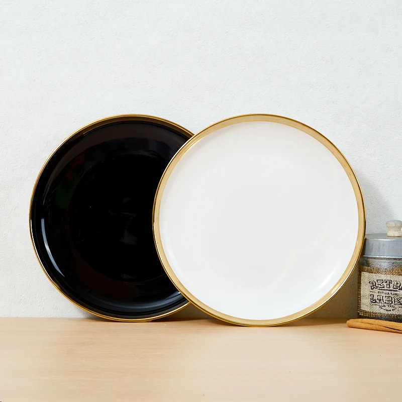 Tuosen, vajilla moderna y duradera de cerámica, platos blancos para cena y pizza con borde dorado y diseño personalizado, ideal para bodas