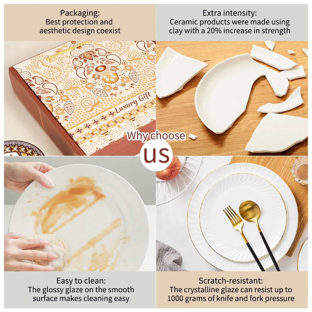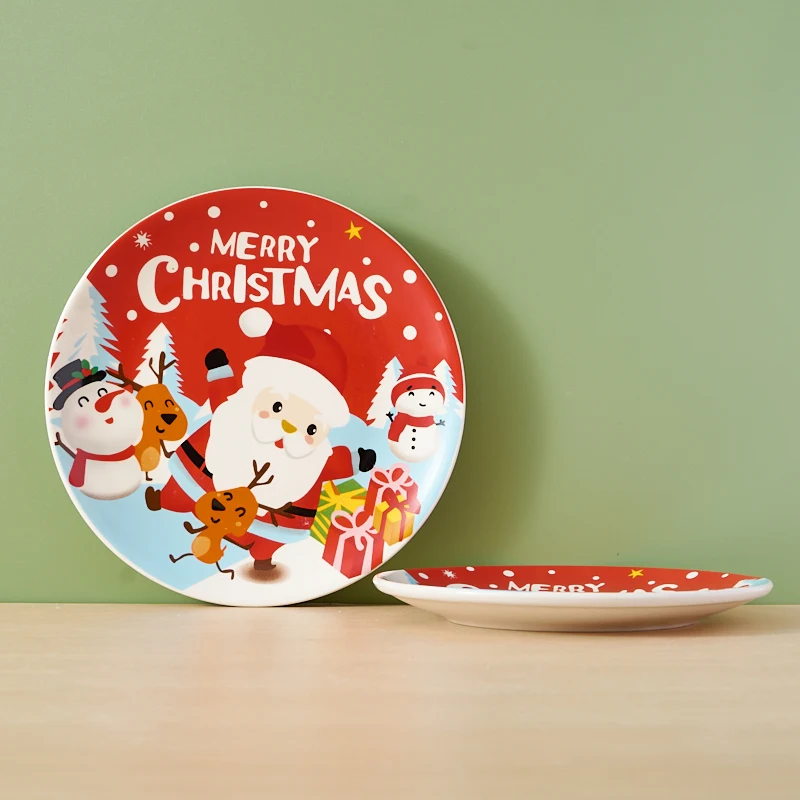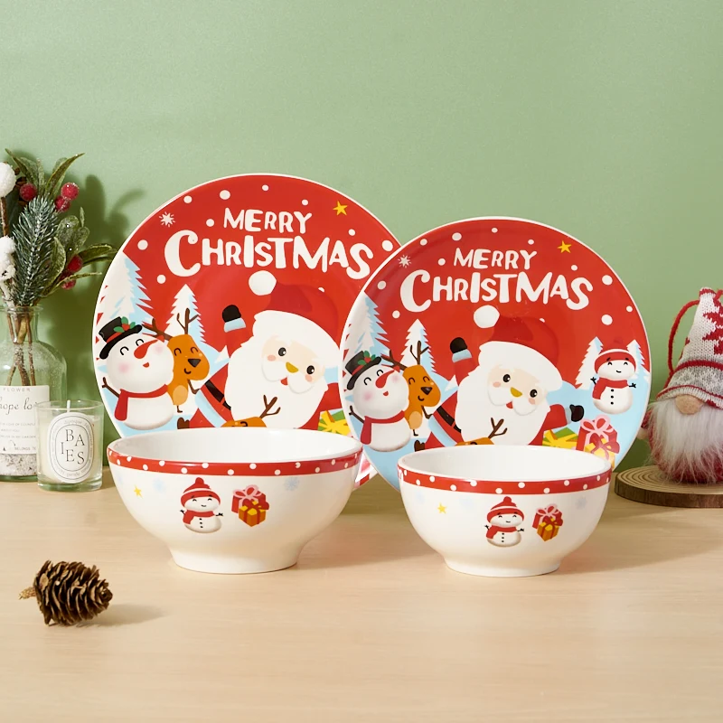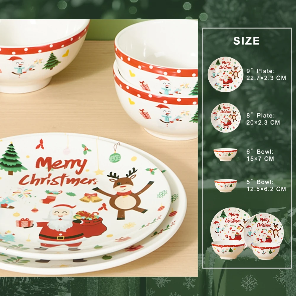 Seata Bronntanais Idirbhearta Porcelaina Lá Fhéile - 4 Chuid, Sábháilte sa Mhiasníochán, Miasa agus Plátaí ina n-áirítear San Nioclás, Sábháilte sa Oigheann agus sa Mhicrotann, Stíl Mheiriceánach