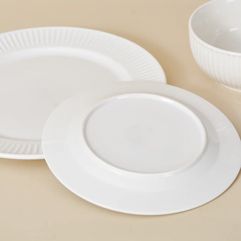 Customized Modern White Ceramic Dinnerware Set Embossed and Durable for Home Hotel or Holidays