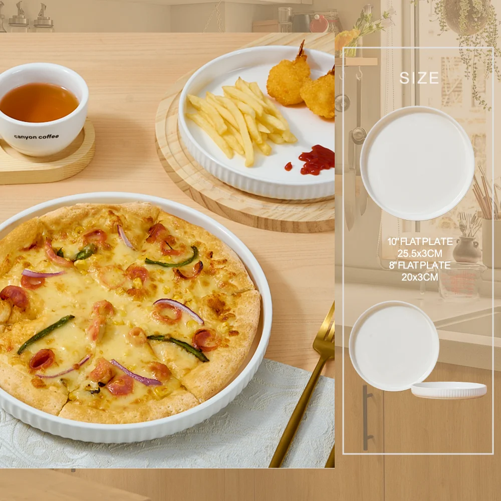 Modern 8-inch 10-inch Pizza Porcelain Glazed Plates Party Tableware Hotel Restaurant Home Use Dishwasher Microwave Safe