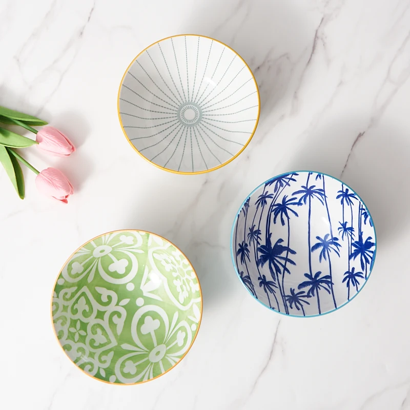 Wholesale Healthy Glaze Ceramic Salad Ramen Bowls Various Styles Printed Underglaze Colored Custom Small Tableware for Parties