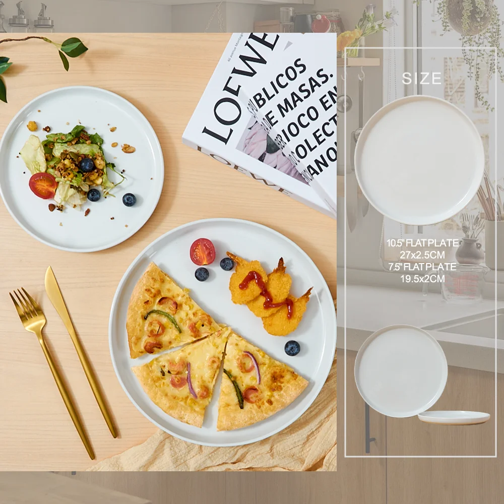 Wholesale Modern Ceramic Flat Plates Single Piece Customizable Size Dishwasher Microwave Safe Elegant Design for Restaurants details